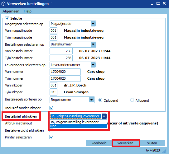 Bestelling verwerken zonder e-mail of PDF te versturen