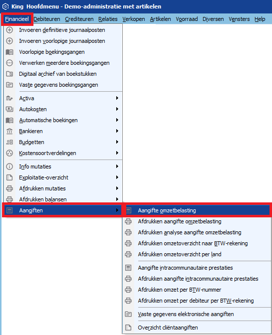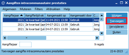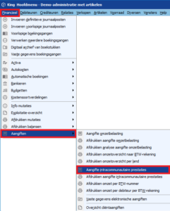 - Ga via het menupunt Financieel > Aangiften > Aangiften intracommunautaire prestaties