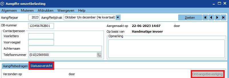 De aangifte is nu verzonden naar de Belastingdienst