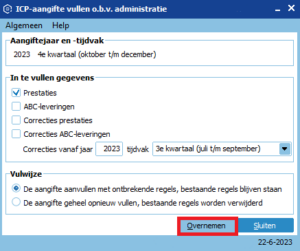 - Klik daarna op Overnemen naar aangifte