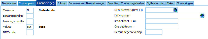 - Onder het tabblad Financiële geg. kunnen de financiële gegevens worden vastgelegd.
