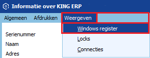 Help > Informatie over KING ERP