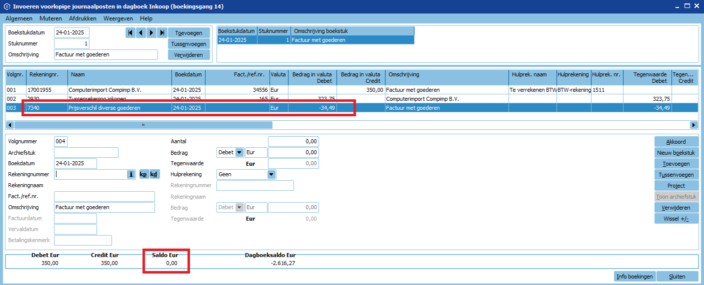 - Als er nog een saldo overblijft kun je dit op een rekening voor prijsverschillen boeken.