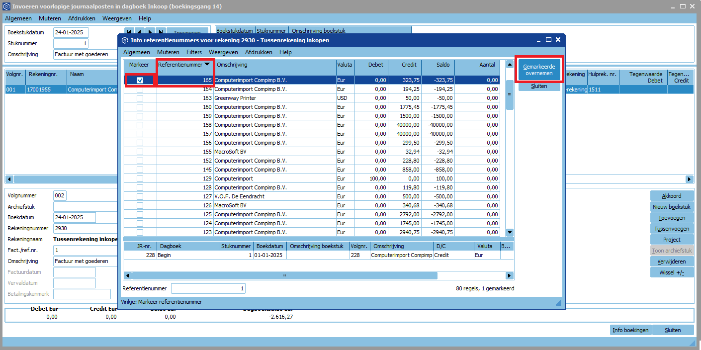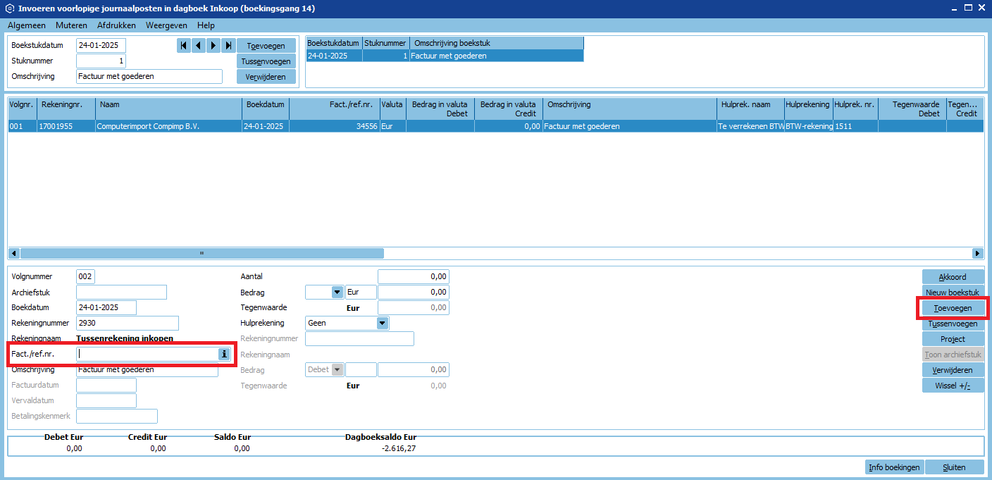 - Klik in Fact./Ref.nr. en vervolgens op de “i“