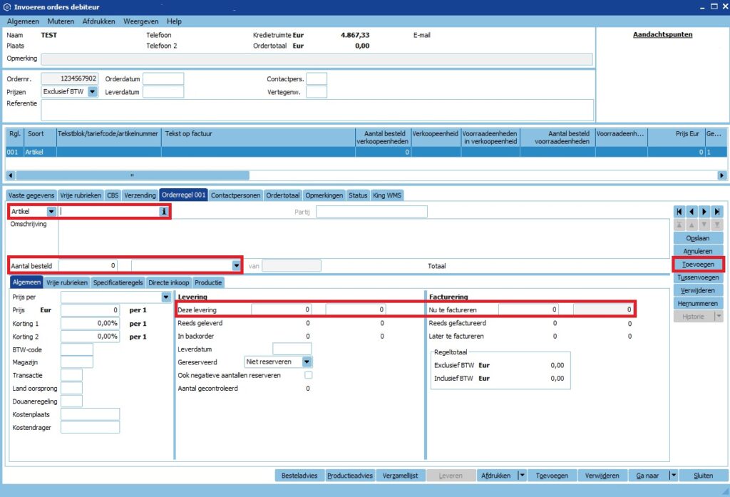 - Ga naar tabblad Orderregel.