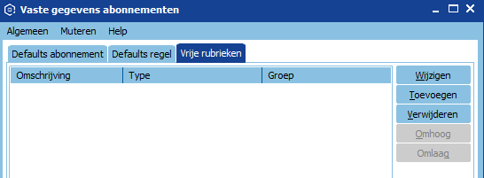 Binnen de abonnementen is het mogelijk om vrije rubrieken aan te maken. Binnen deze rubrieken kan extra informatie worden gevuld per abonnement.