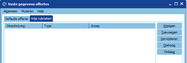 Binnen de offertes is het mogelijk om vrije rubrieken aan te maken. Binnen deze rubrieken kan extra informatie worden gevuld per offerte.